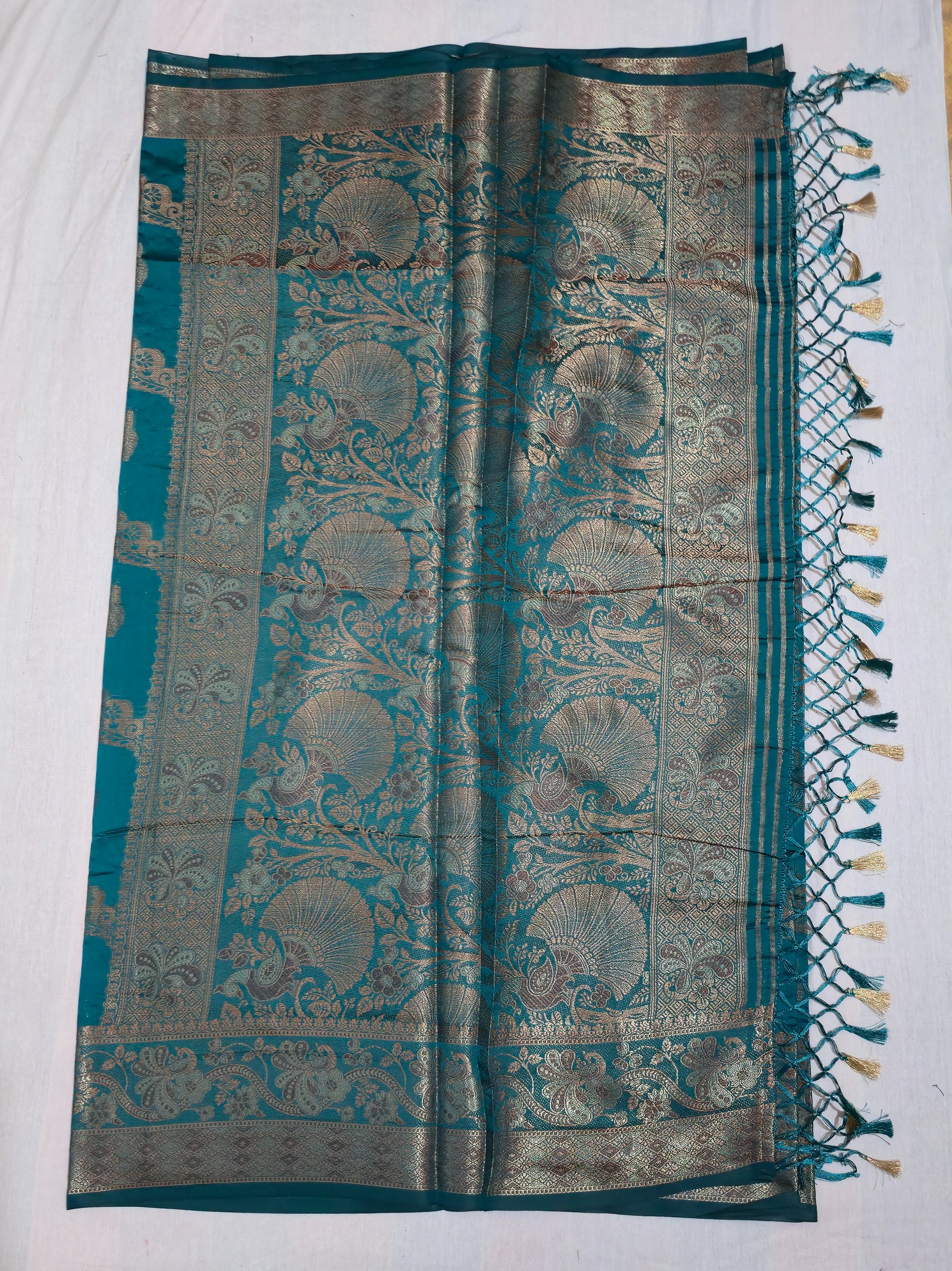 With its luxurious texture and effortless flow, this saree beautifully bridges traditional craftsmanship and contemporary style. Style it with classic jewellery for a festive allure or let its serene charm take center stage with minimal accessories for an elegant, understated look.