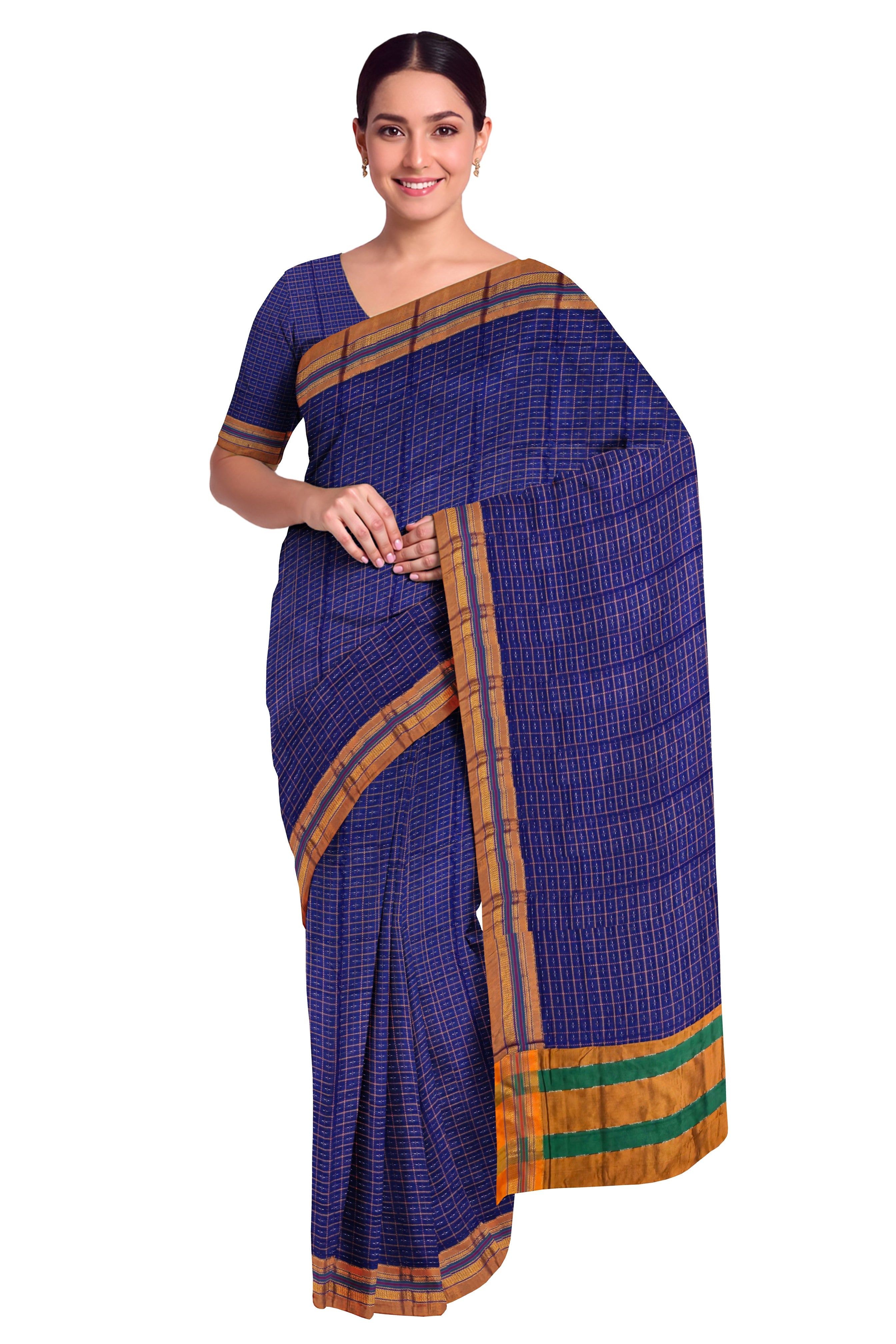 Graceful and refined, this Handloom Pure Cotton Half-Inch Box Star saree in Purple highlights the delicate artistry of handloom weaving. Featuring subtle half-inch box star motifs across soft, breathable cotton, it brings a gentle rhythm to the classic silhouette. The rich purple tone evokes effortless elegance — perfect for cultural gatherings, daytime celebrations, or serene everyday style.